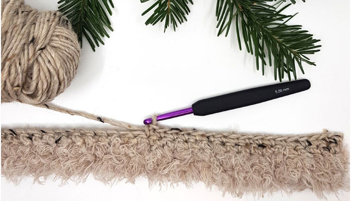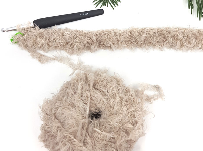 Start med å hekle 62 lm med Pure Eco Fur.