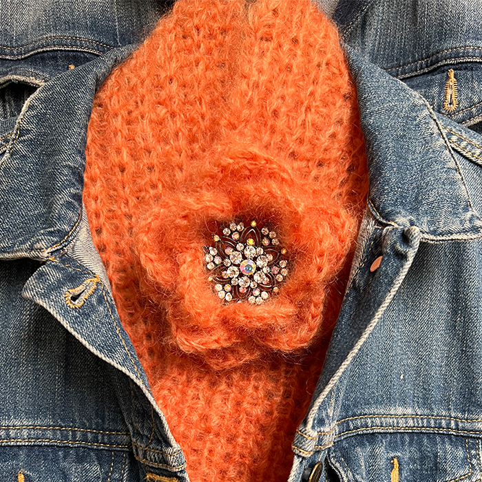 Heklet rose med skjerf